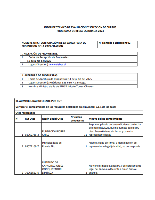 Rectifica Informe segundo llamado 2024